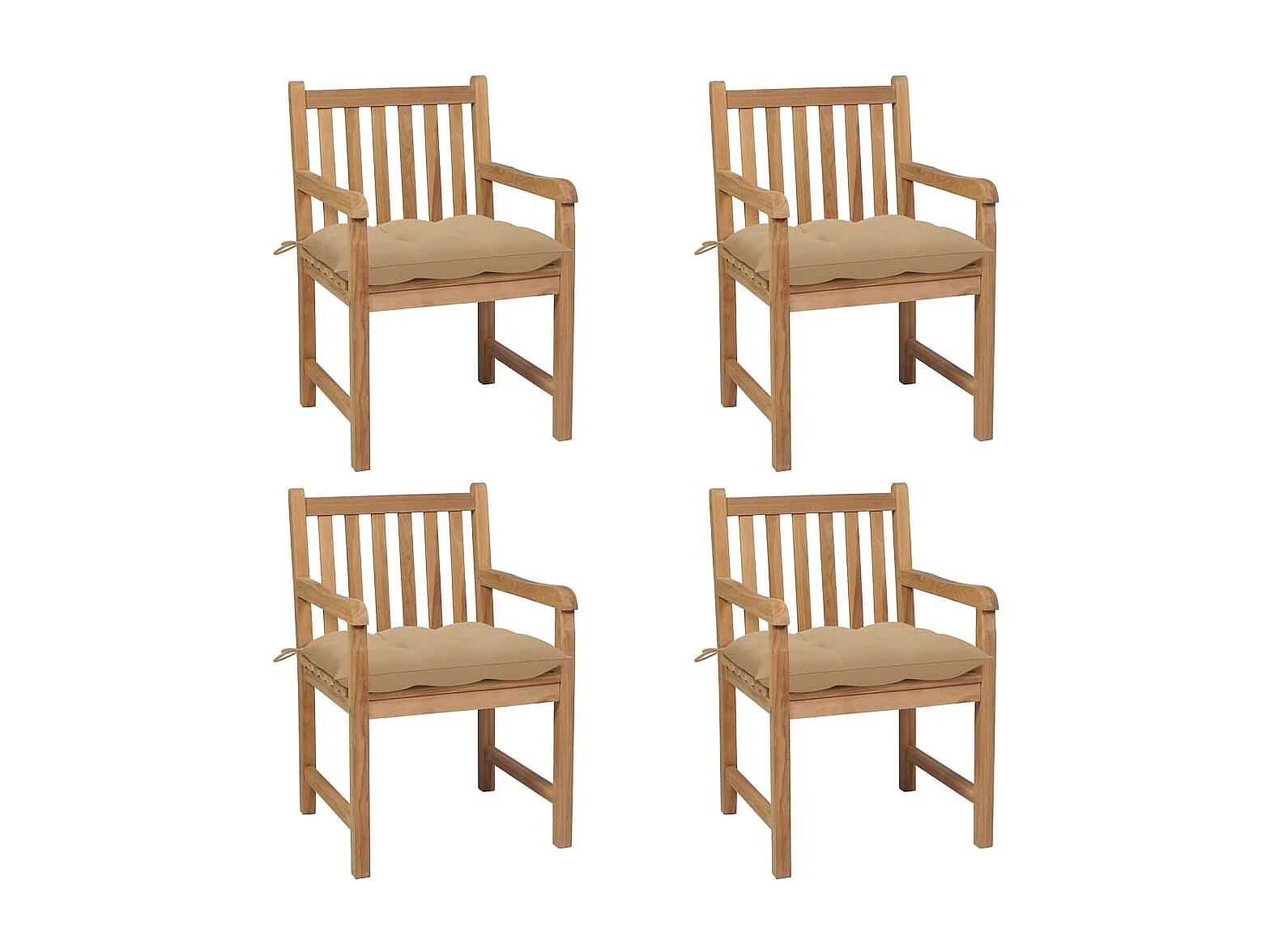 Cadeiras de jardim 4 unidades com almofadas bege Madeira maciça de teca