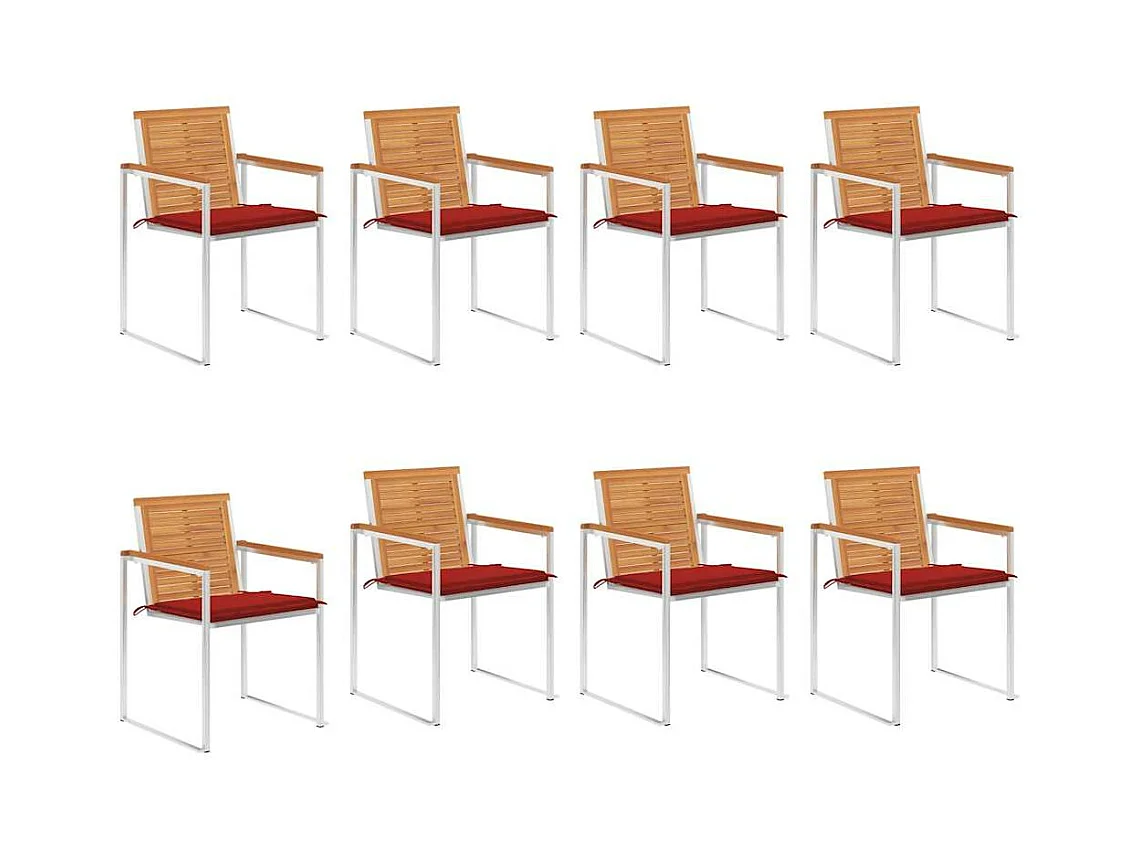 Cadeiras de jardim + almofadões vermelho tinto 8 peças teca maciça