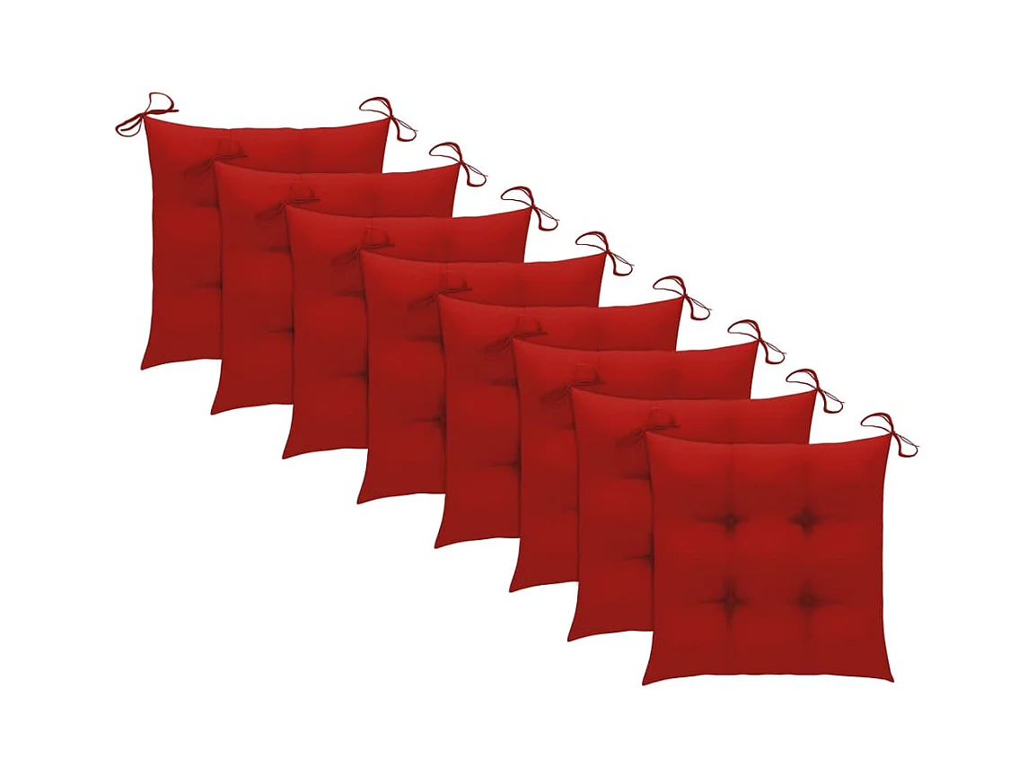 Cadeiras de jardim + almofadões vermelho tinto 8 peças teca maciça