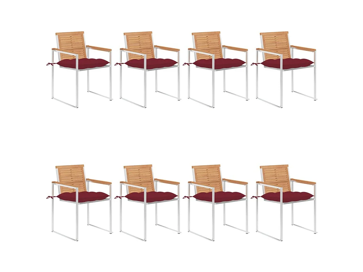 Cadeiras de jardim + almofadões vermelho tinto 8 peças teca maciça
