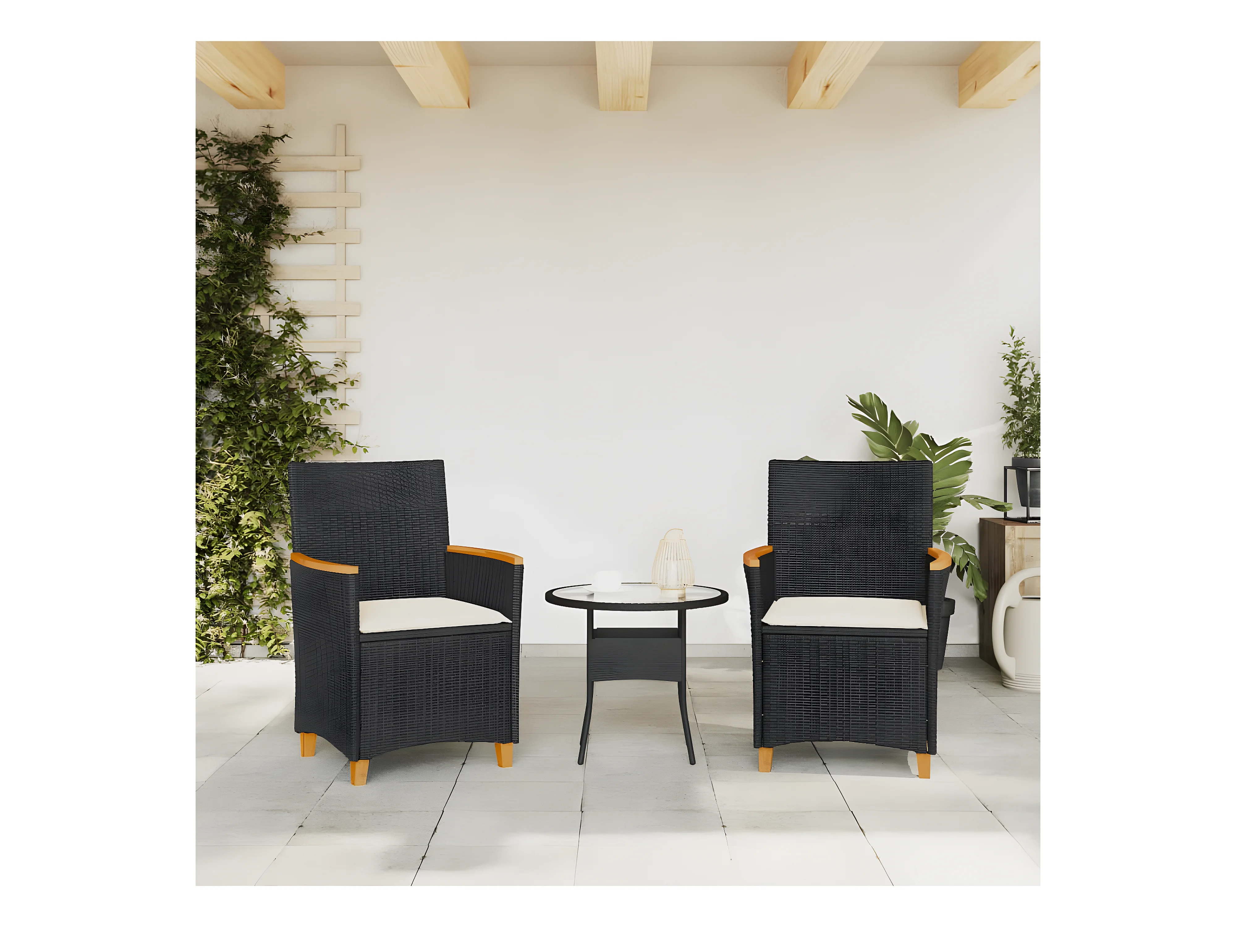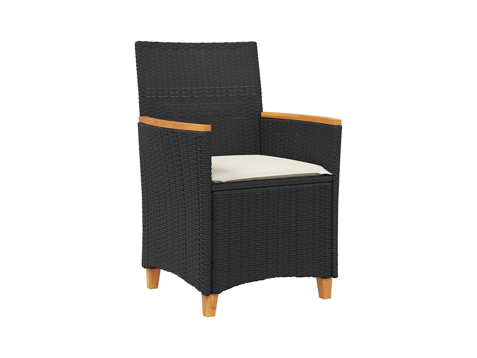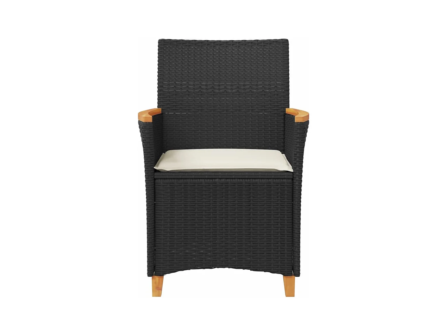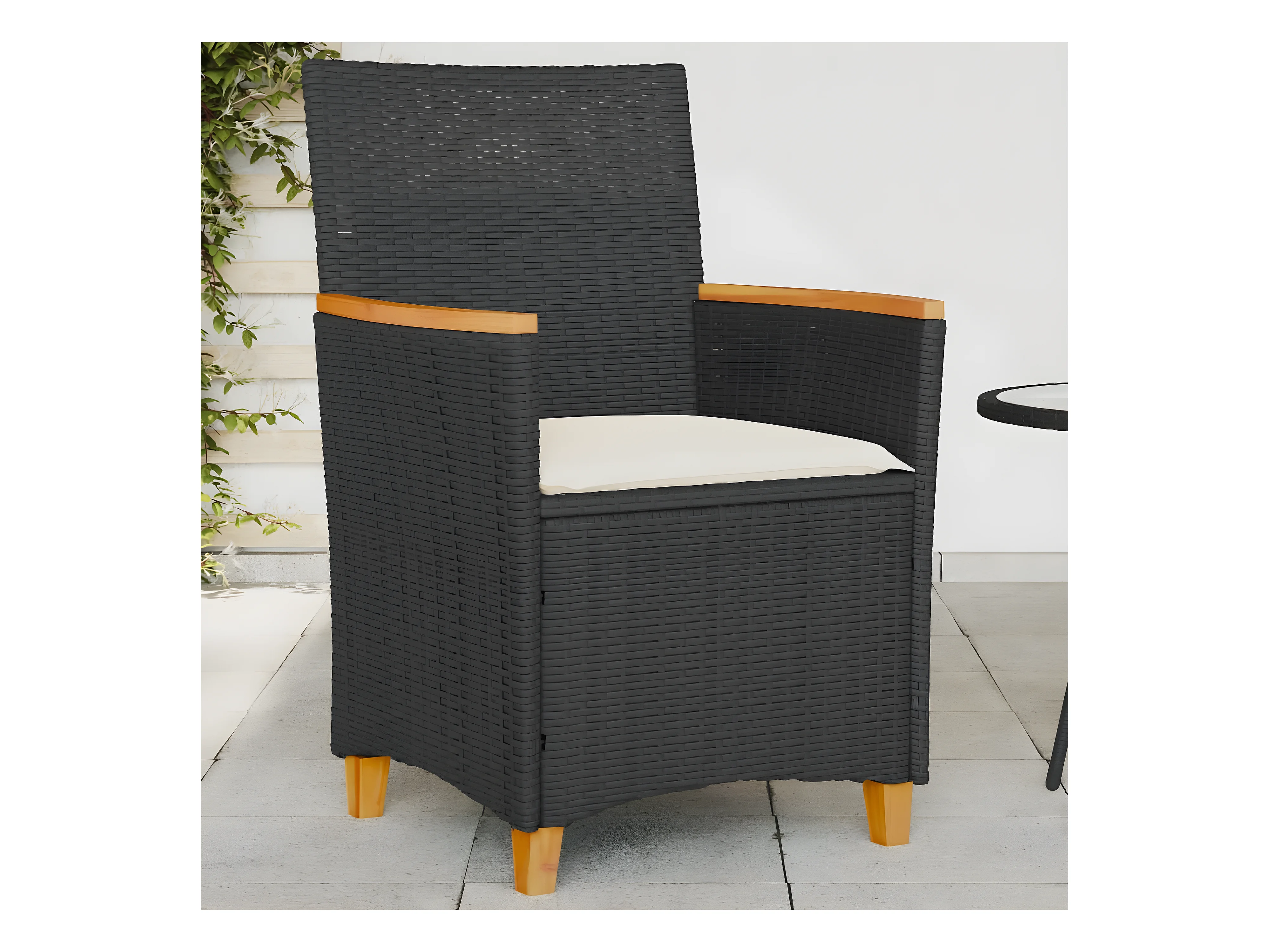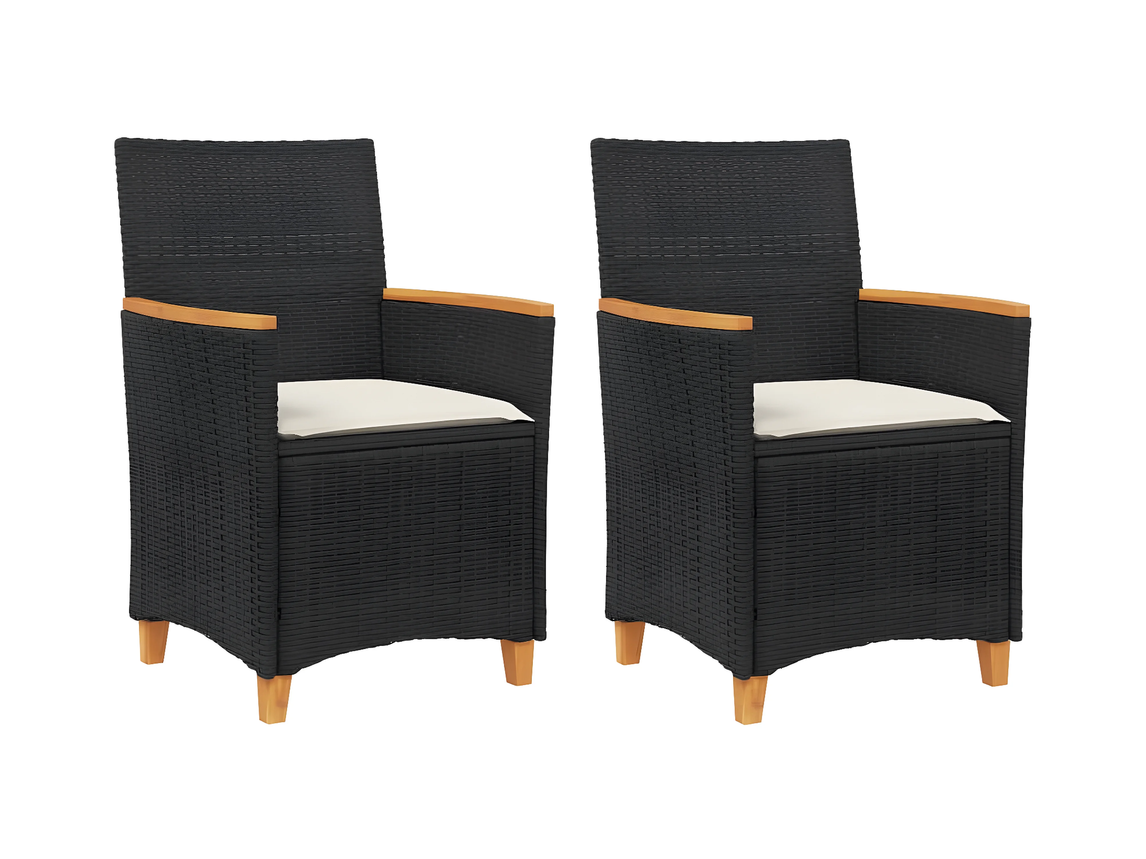 Cadeiras de jardim com almofadões 2 pcs vime PE/acácia preto PT102781