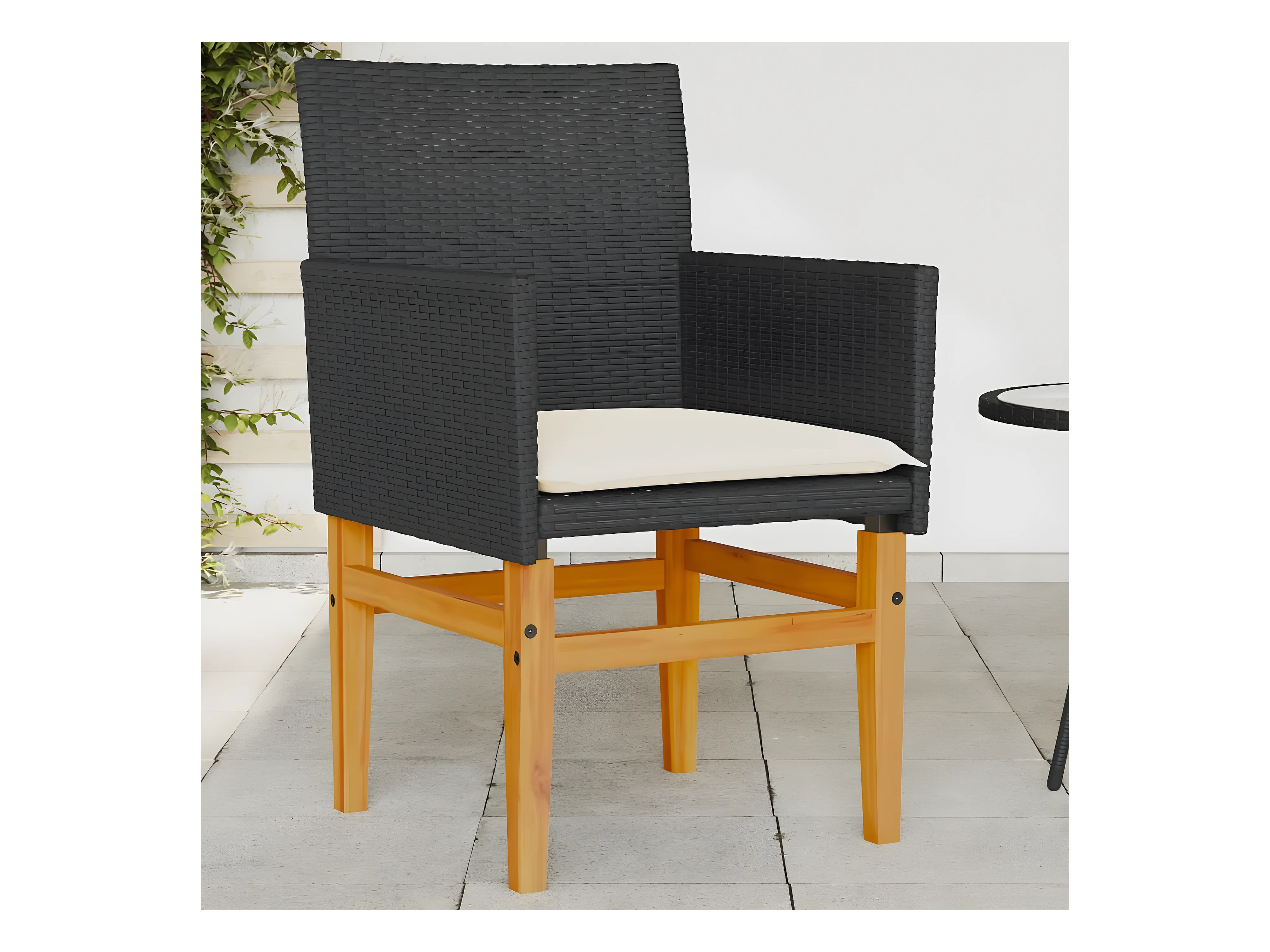 Cadeiras de jardim c/ almofadões 2 pcs vime PE/madeira preto PT932958