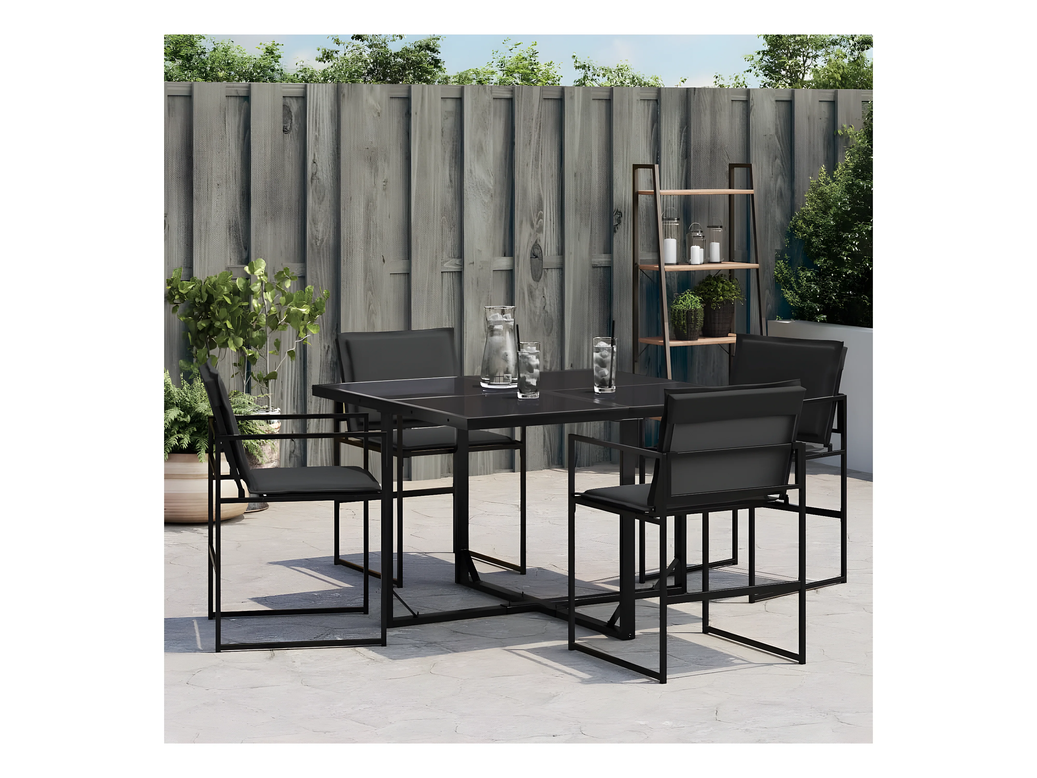 Cadeiras de jardim c/ almofadões 4 pcs aço e textilene preto PT151960