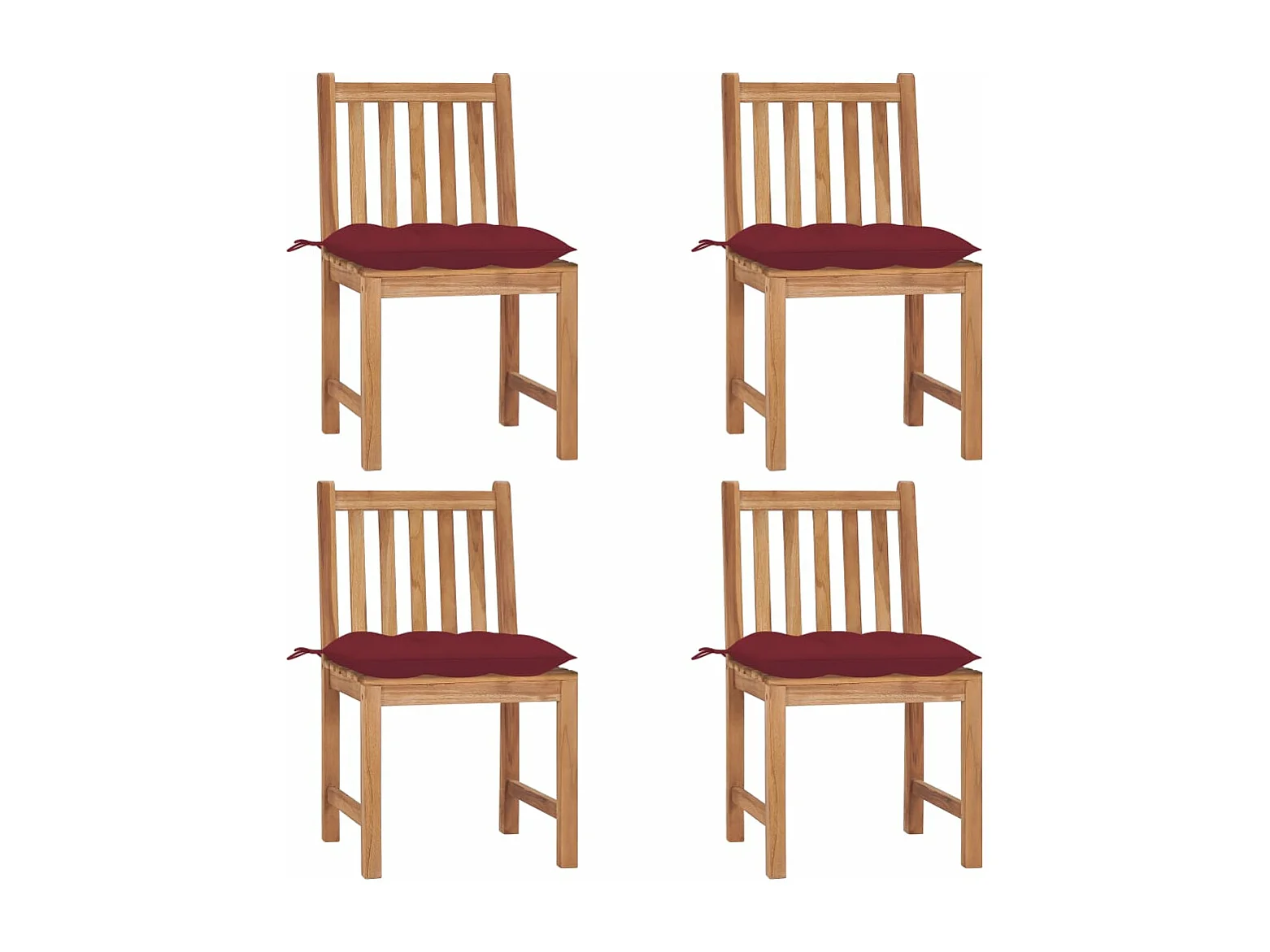 Cadeiras jardim c/ almofadões vermelho tinto 4 pcs teca maciça PT428006