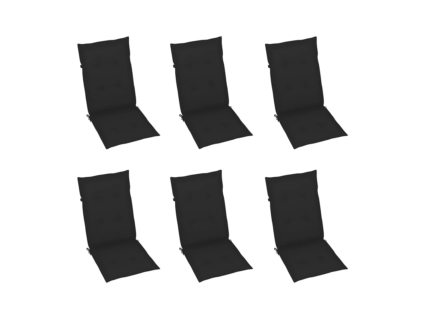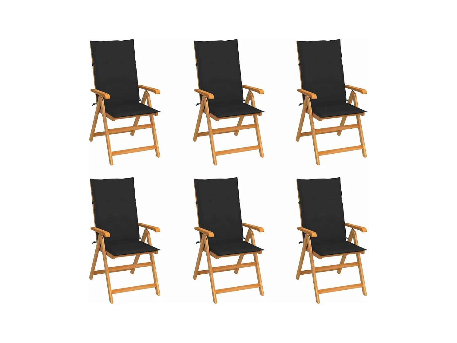 Cadeiras de jardim c/ almofadões pretos 6 peças teca maciça
