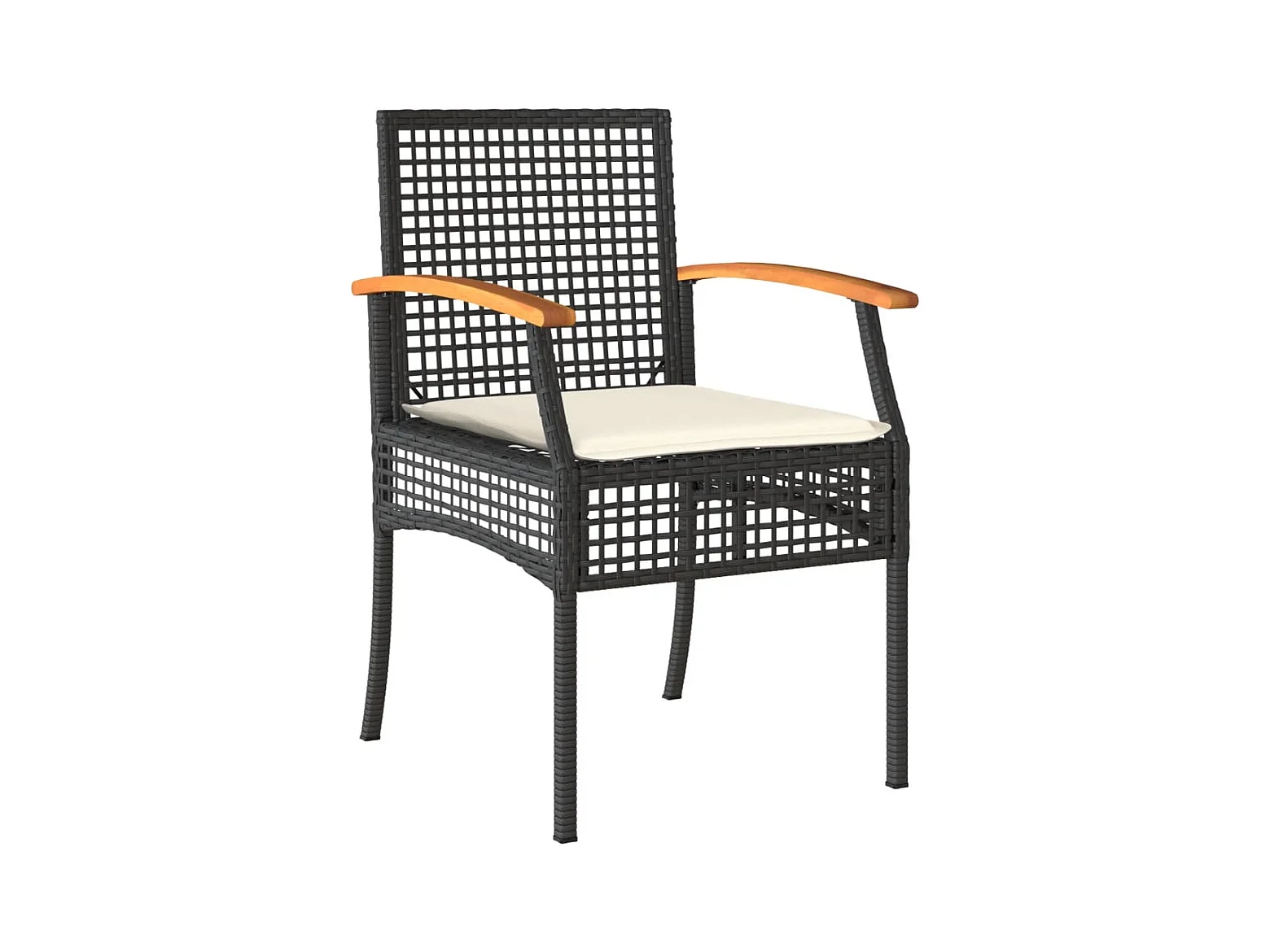 Cadeiras de jardim com almofadões 2 pcs vime PE/acácia preto PT102781