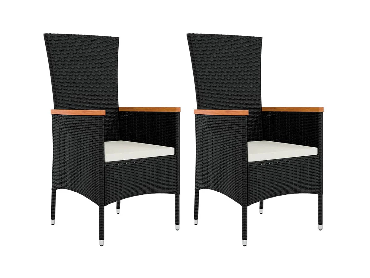 Cadeiras de jardim com almofadões 2 pcs vime PE preto PT227742
