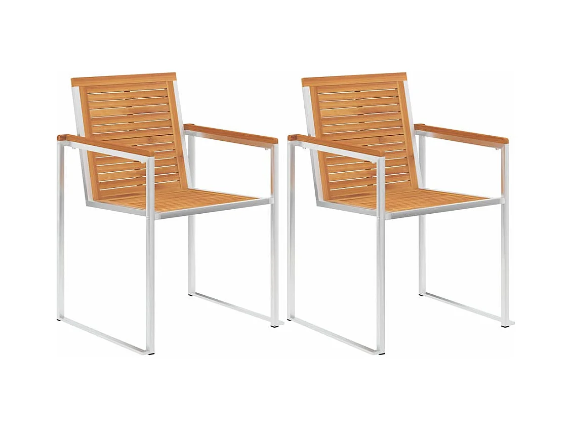 Cadeiras de jardim com almofadões 2 peças teca maciça e aço