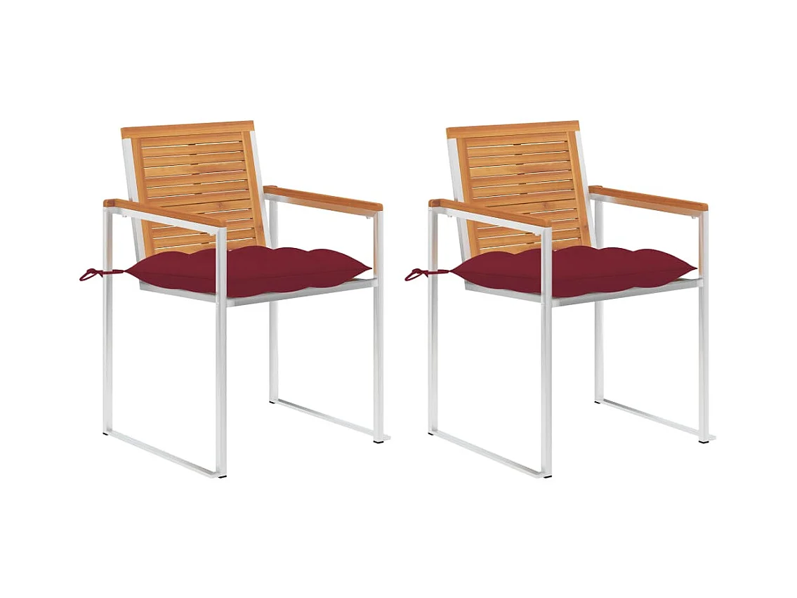 Cadeiras jardim c/ almofadões vermelho tinto 2 pcs teca maciça PT120935