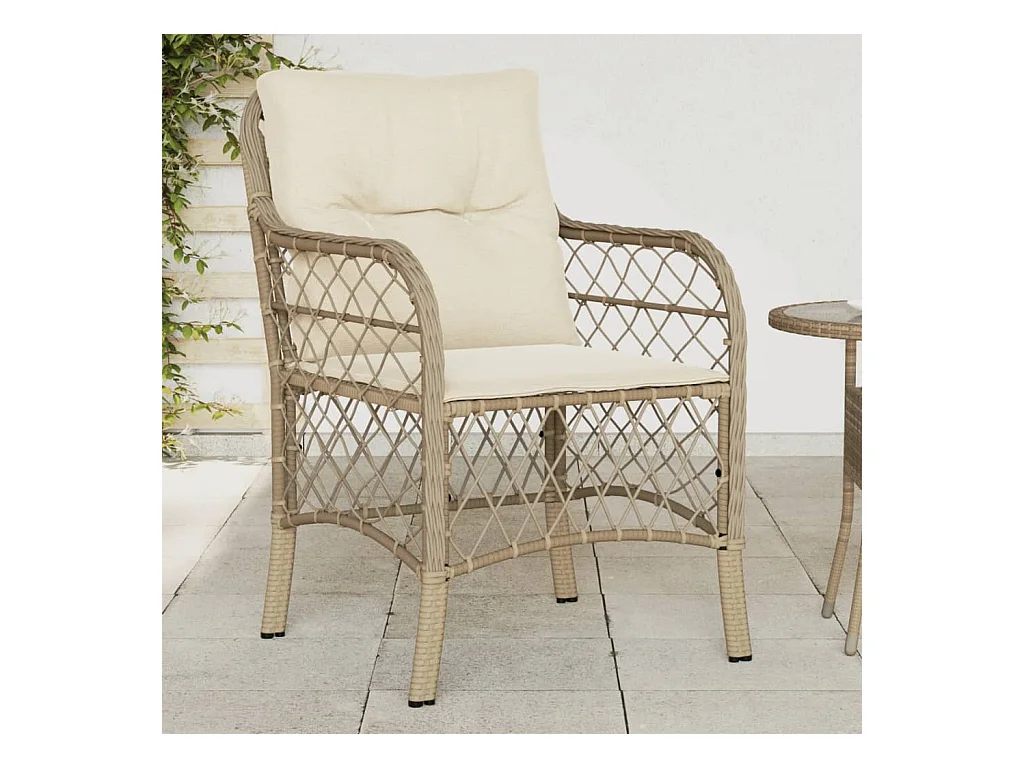 Cadeiras de jardim com almofadões 2 pcs vime PE bege PT359987