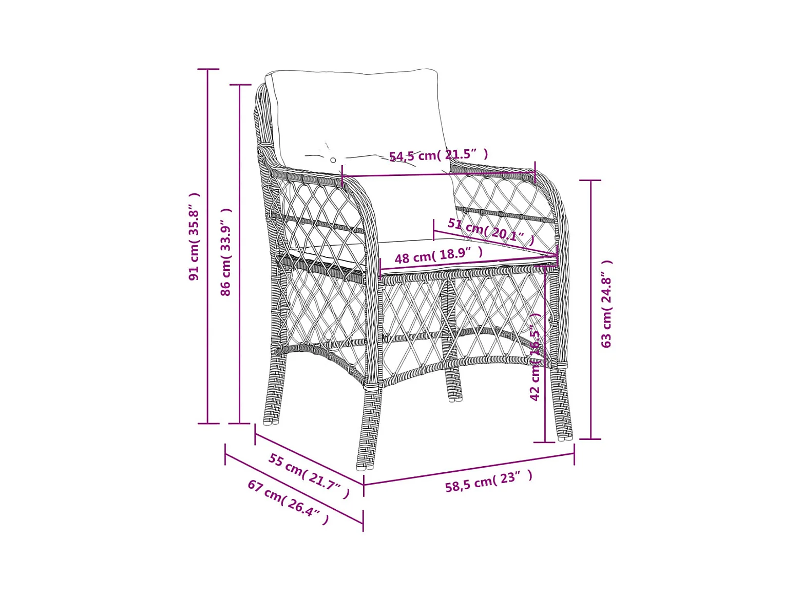 Cadeiras de jardim com almofadões 2 pcs vime PE bege PT156586