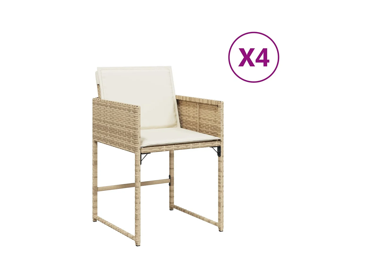 Cadeiras de jardim com almofadões 4 pcs vime PE bege PT457289