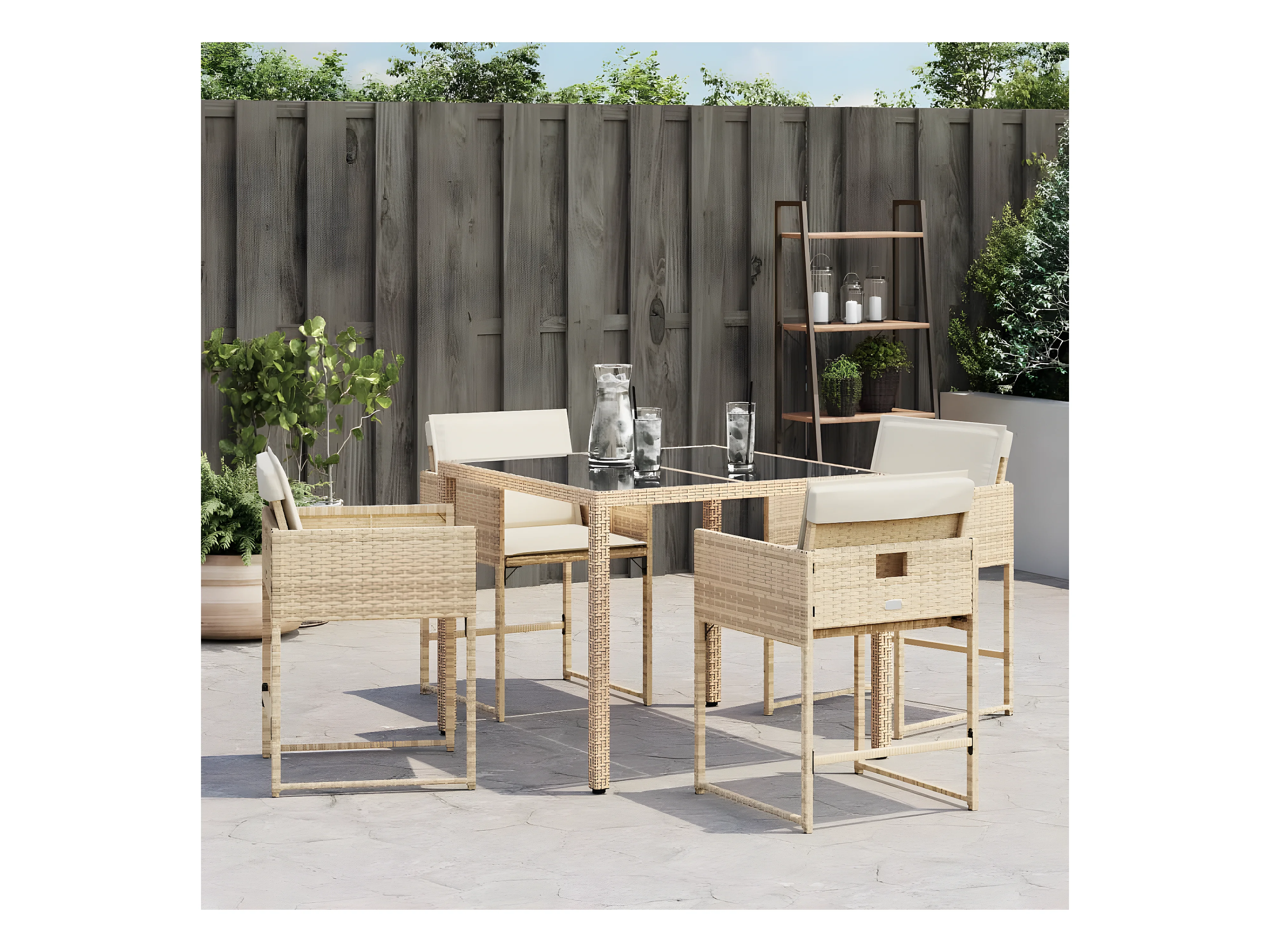 Cadeiras de jardim com almofadões 4 peças vime PE bege