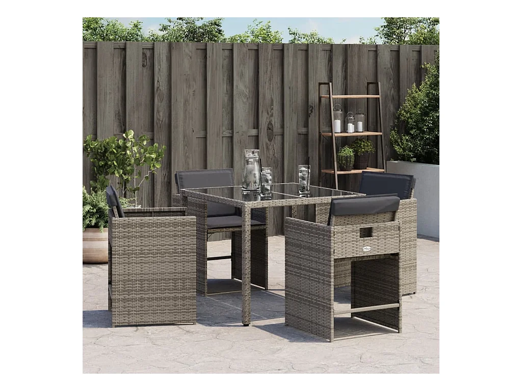 Cadeiras de jardim c/ almofadões 4 peças vime PE cinzento