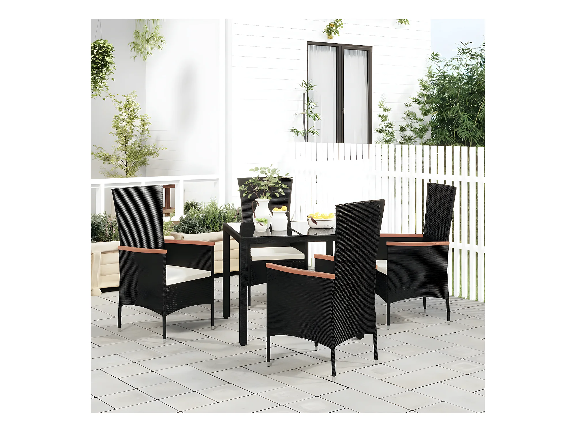 Cadeiras jardim c/ almofadões 4 pcs 56,5x57x83 cm vime PE preto PT560101