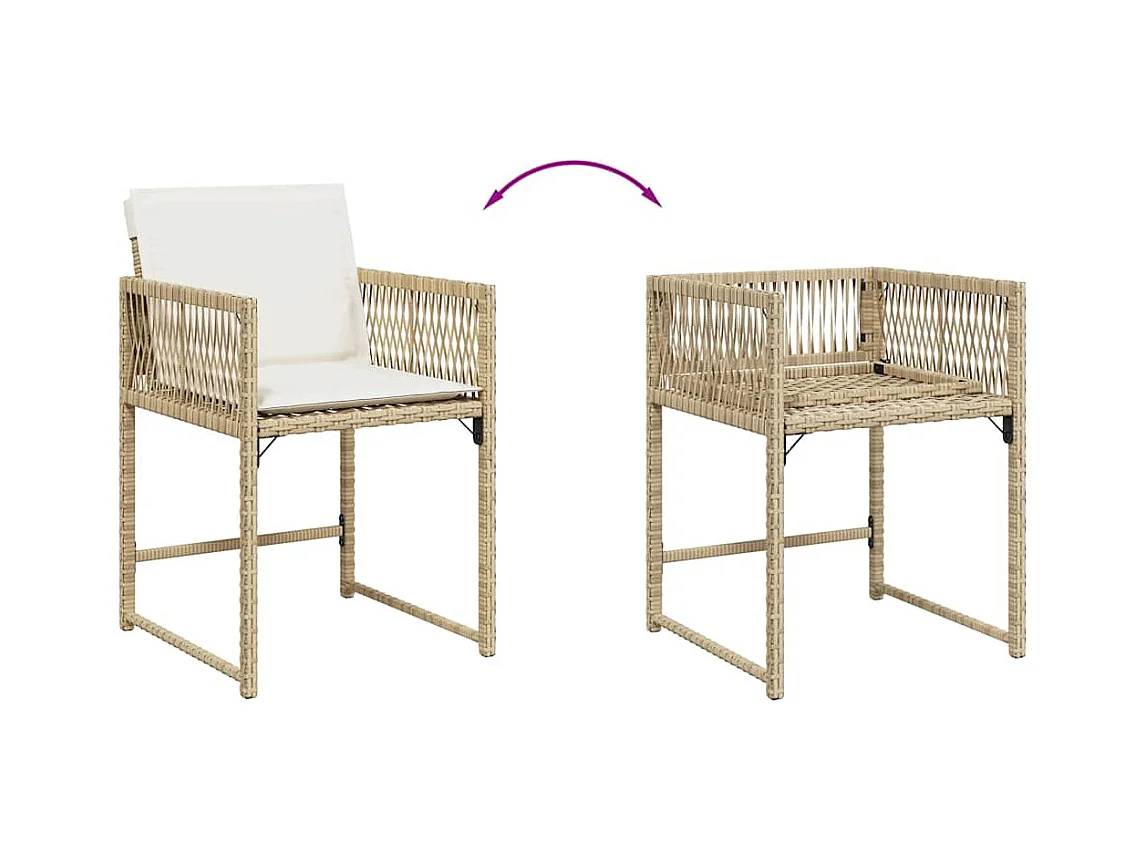 Cadeiras de jardim com almofadões 4 pcs vime PE bege PT729587