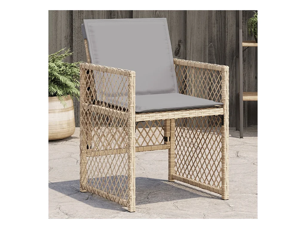 Cadeiras de jardim com almofadões 4 pcs vime PE bege PT729587