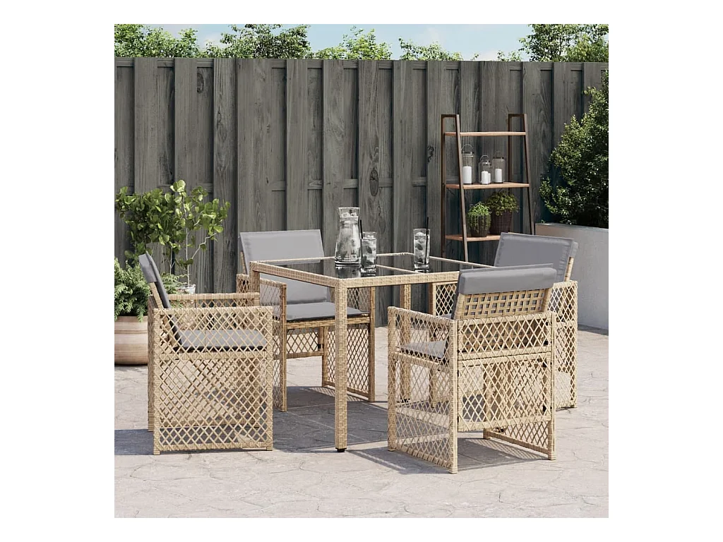 Cadeiras de jardim com almofadões 4 peças vime PE bege