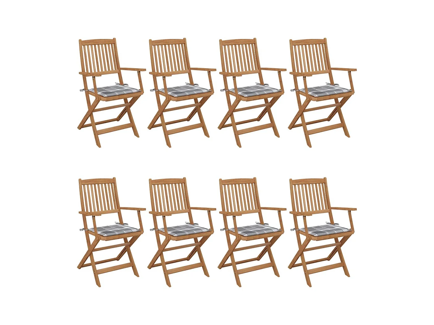 Cadeiras de exterior dobráveis com almofadões 8 peças acácia maciça