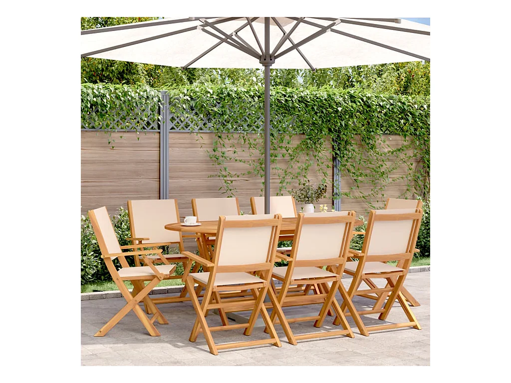 Cadeiras de jardim dobráveis 8 peças tecido e madeira maciça bege