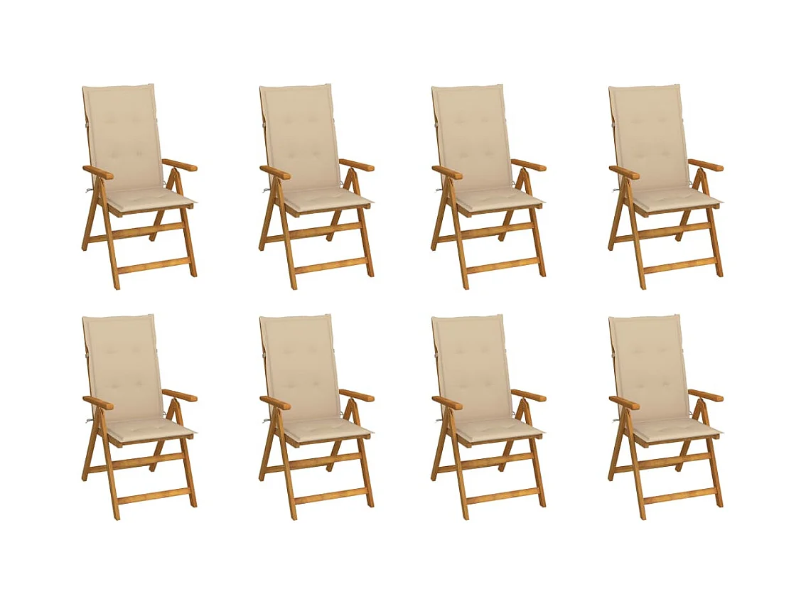 Cadeiras de jardim reclináveis 8 peças madeira acácia maciça bege