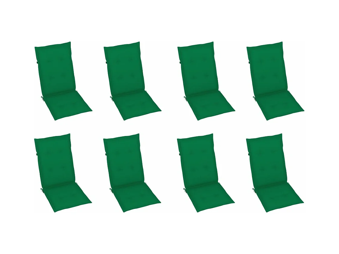 Conjunto de 8 cadeiras de jardim com almofadas verdes brilhantes em teca maciça