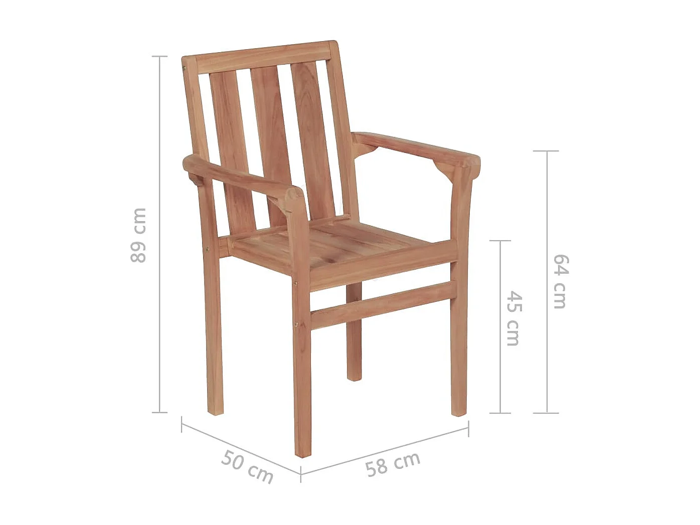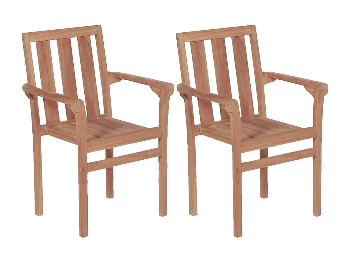Cadeiras de jardim empilháveis 2 unidades em madeira maciça de teca