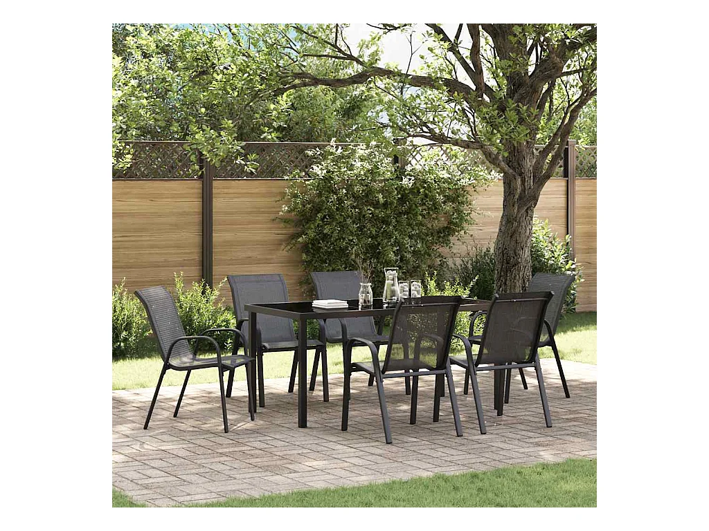 Cadeiras de jardim empilháveis 6 pcs textilene preto
