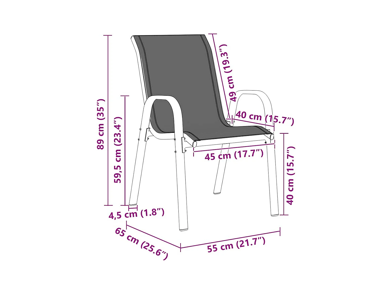 Cadeiras de jardim empilháveis 4 pcs textilene preto