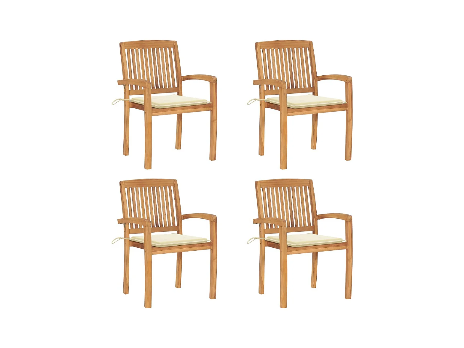Cadeiras de jardim empilháveis com almofadas 4 peças Teca maciça