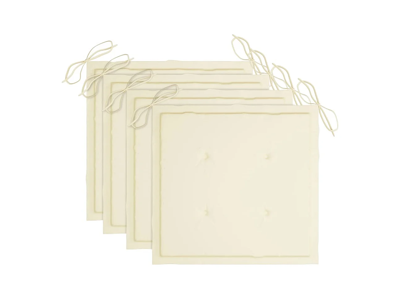 Cadeiras de jardim com almofadas branco creme 4 peças Teca maciça