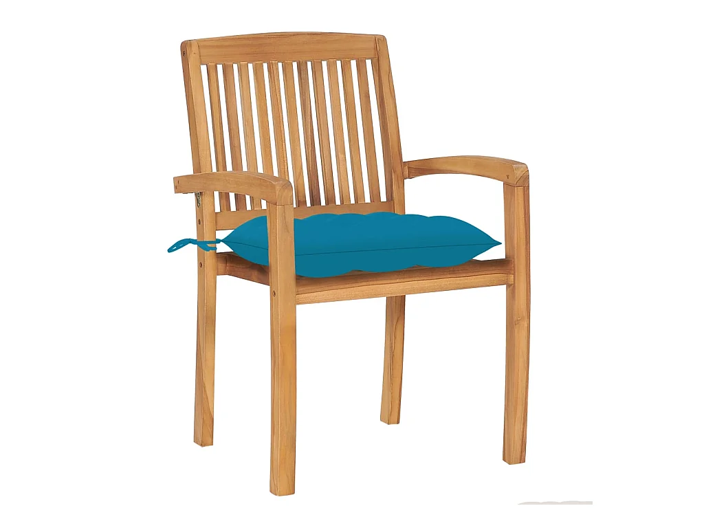 Conjunto de 4 cadeiras de jardim com almofadas azuis Madeira maciça de teca