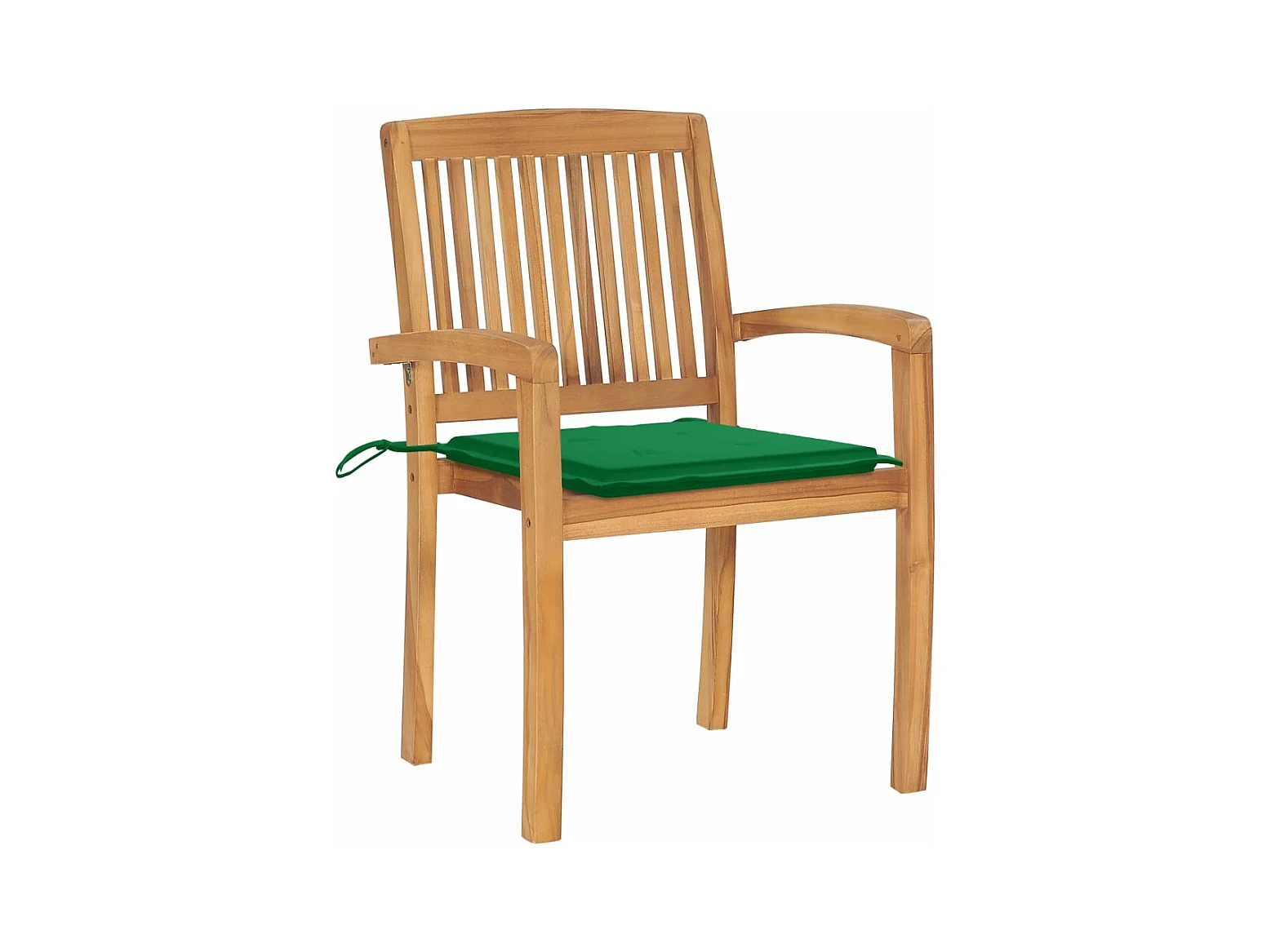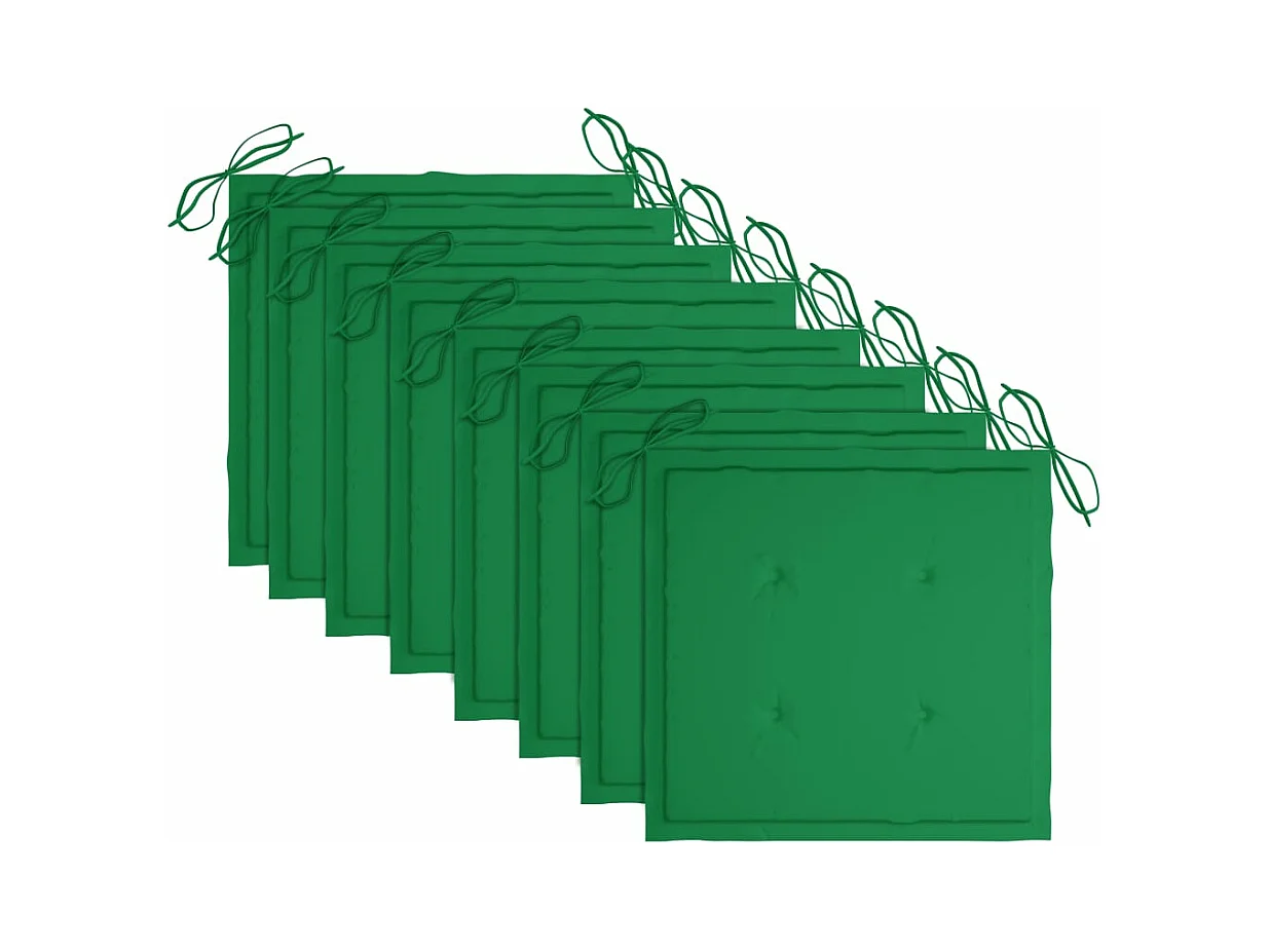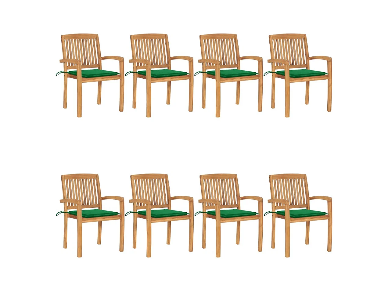 Conjunto de 8 cadeiras de jardim com almofadas verdes brilhantes em teca maciça