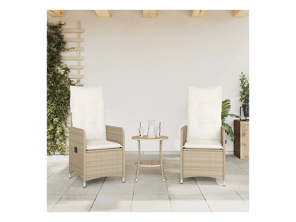 Cadeiras de jardim reclináveis 2 peças com mesa vime PE bege