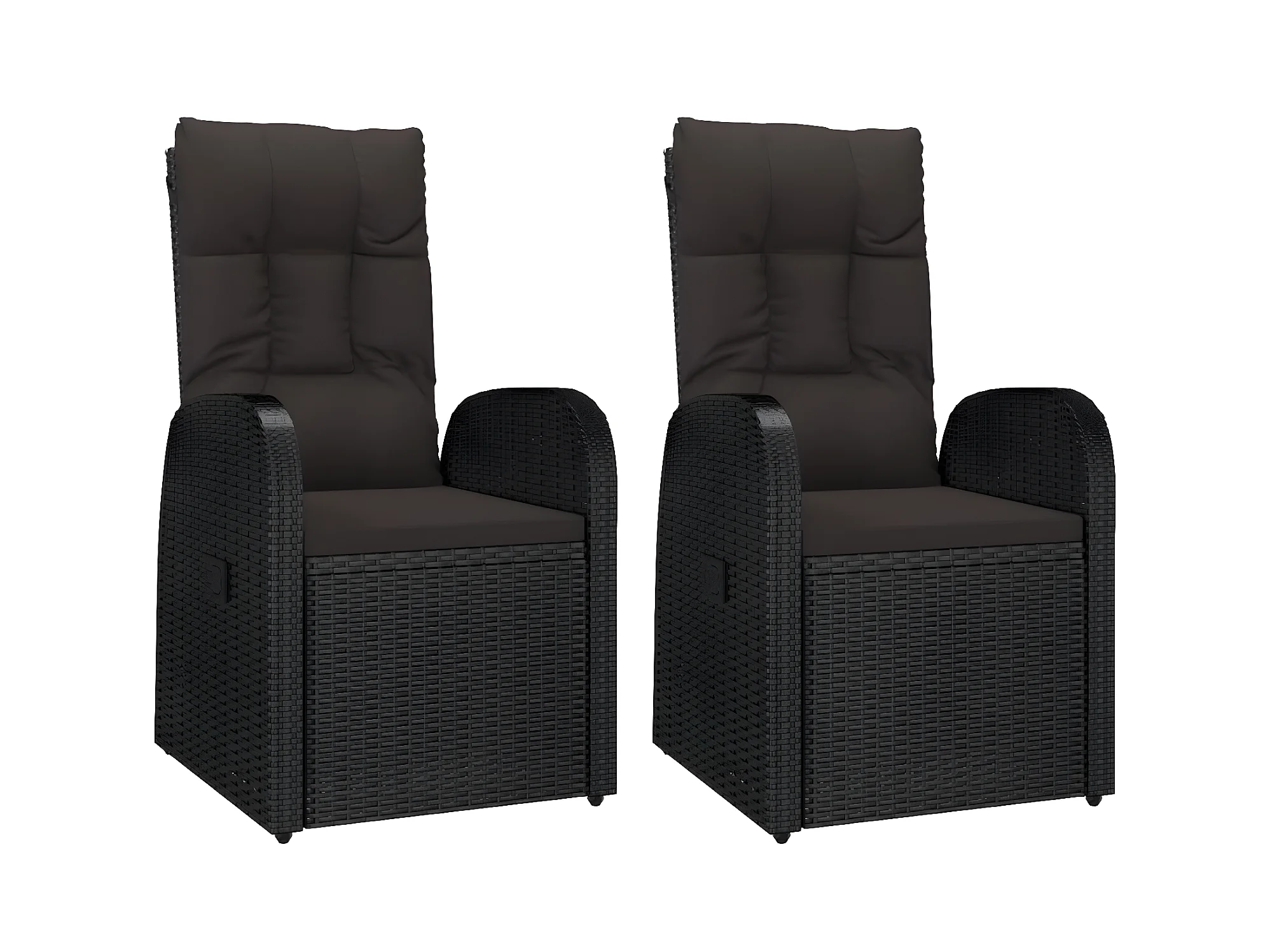 Cadeiras jardim reclináveis 2 pcs c/ almofadões vime PE preto PT898402
