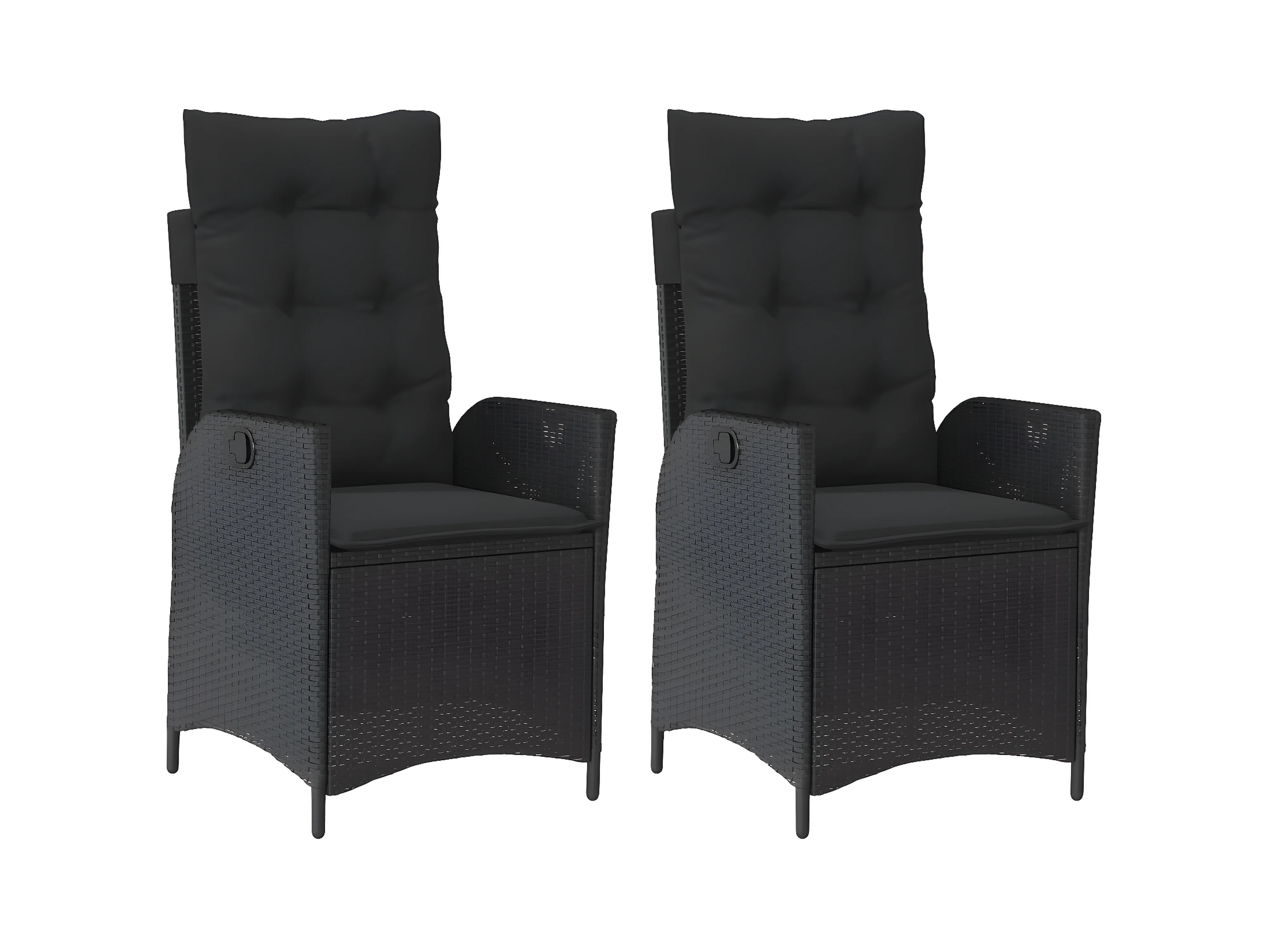 Cadeiras de jardim reclináveis c/ almofadões 2pcs vime PE preto PT309975