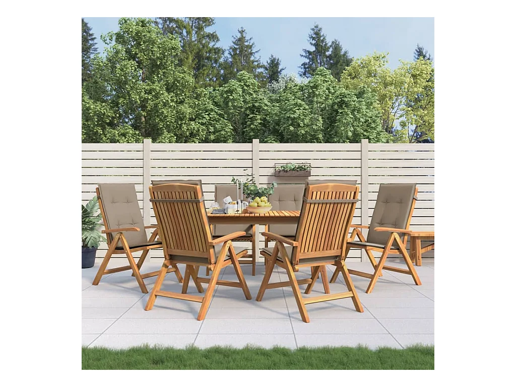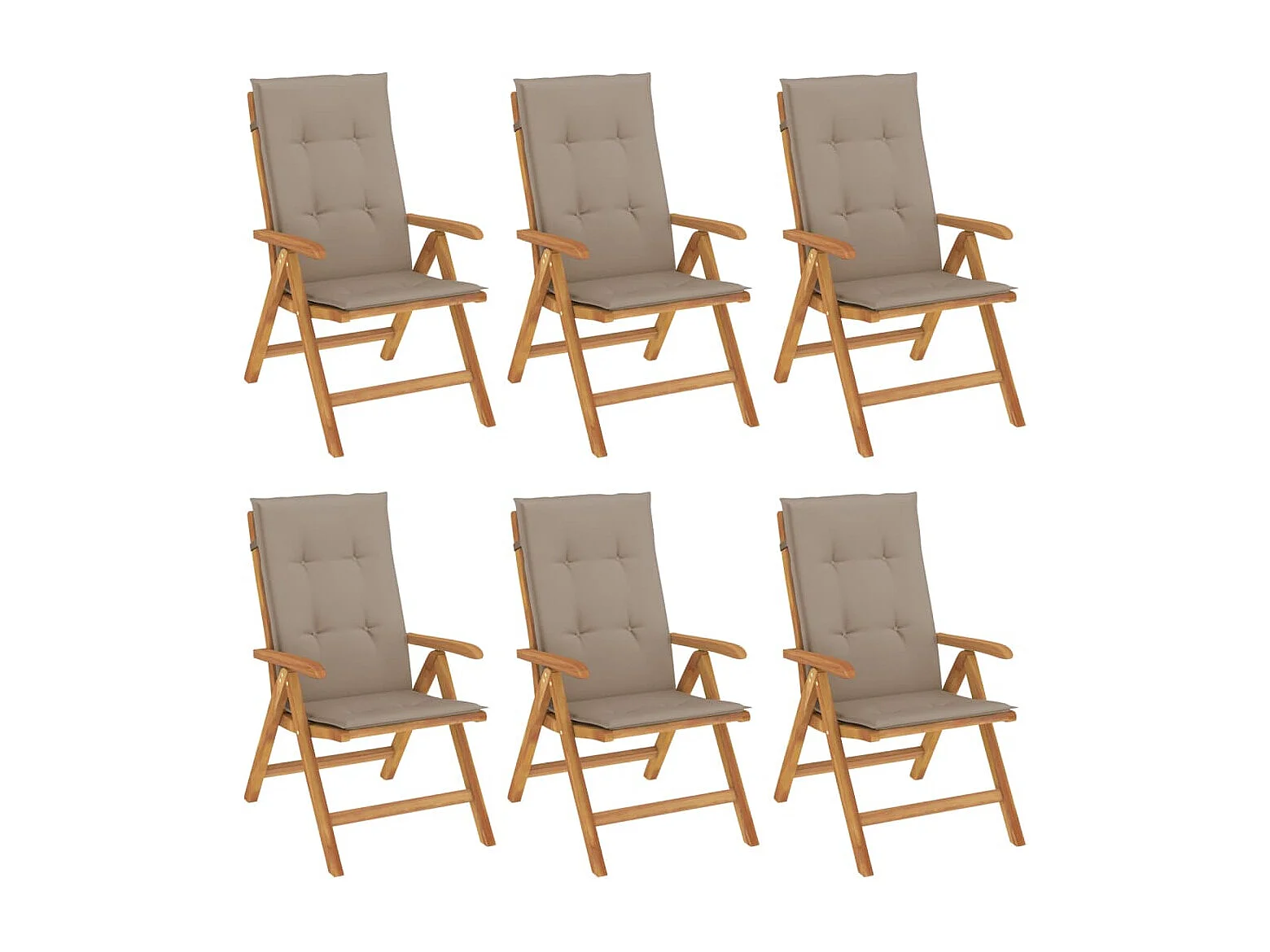 Cadeiras de jardim reclináveis c/ almofadões 6 peças teca maciça
