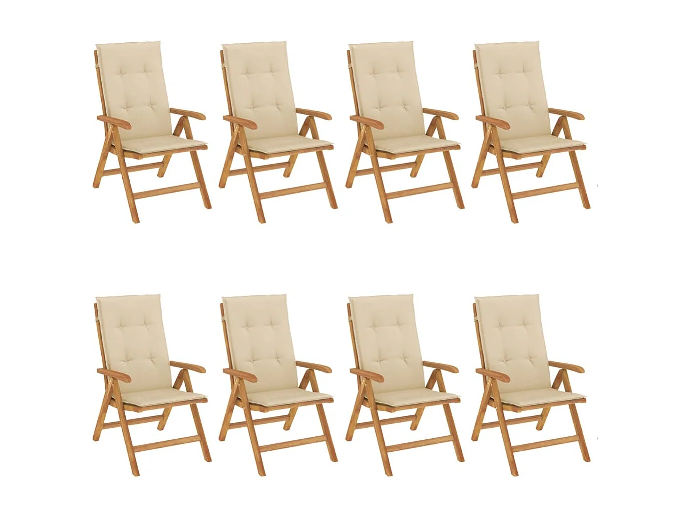 Cadeiras de jardim reclináveis c/ almofadões 8 peças teca maciça