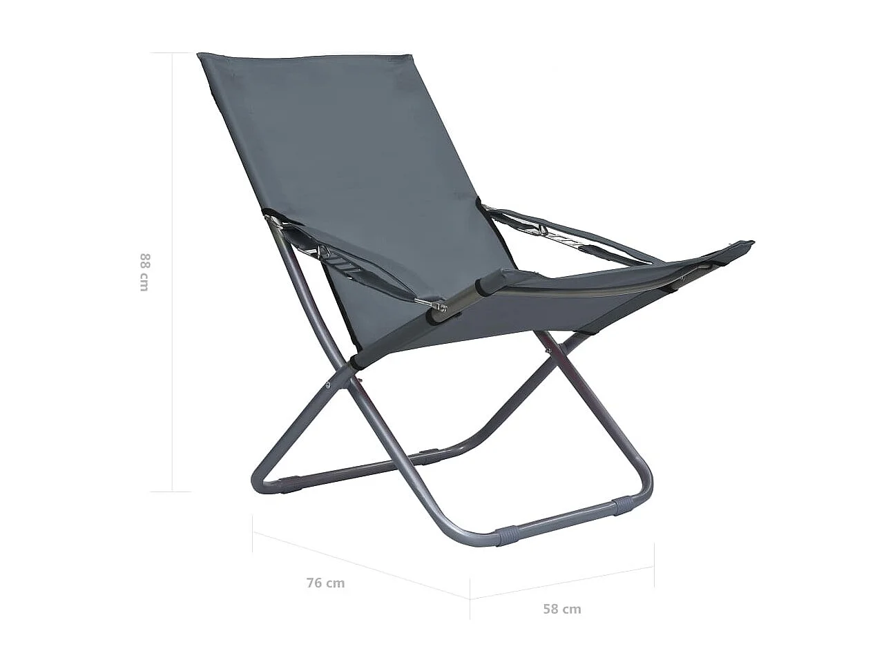 Cadeiras de praia dobráveis 2 peças tecido cinzento