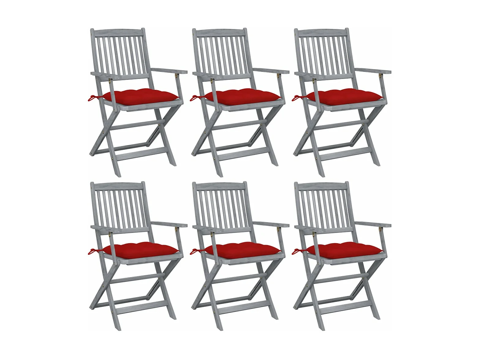 Cadeiras exterior dobráveis c/ almofadões 6 peças acácia maciça