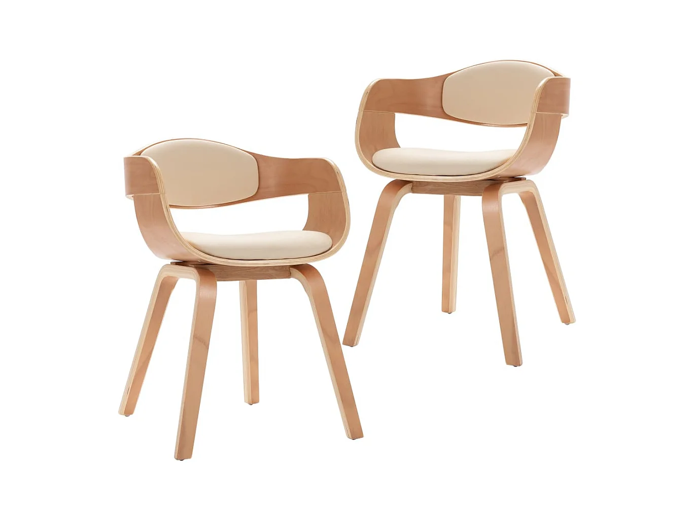 Cadeiras jantar 2 pcs madeira curvada e couro artificial creme PT489189