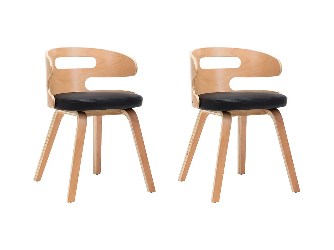 Cadeiras jantar 2 peças madeira curvada e couro artificial preto