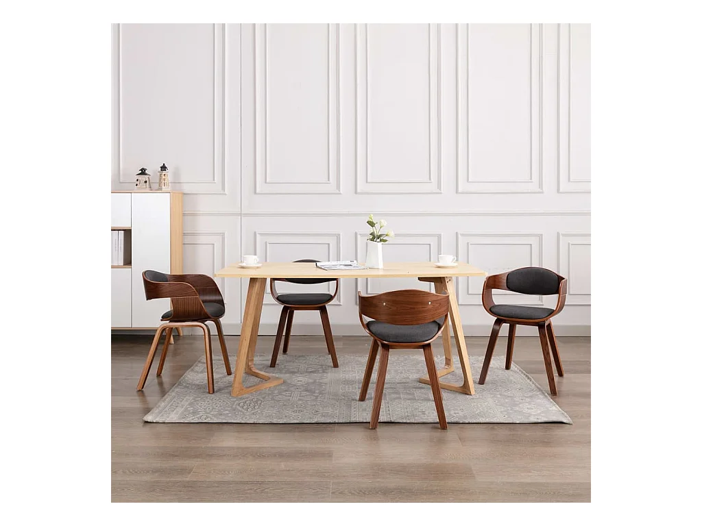 Cadeiras jantar 6 peças madeira curvada e tecido cinzento