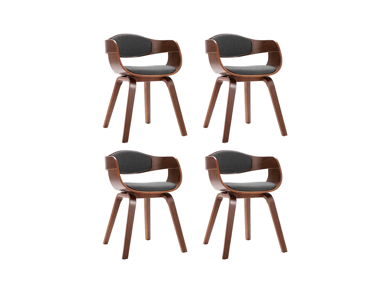 Cadeiras jantar 4 peças madeira curvada e tecido cinzento