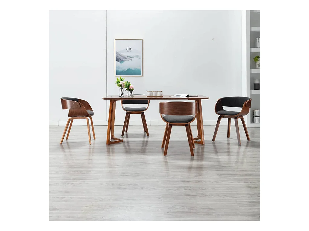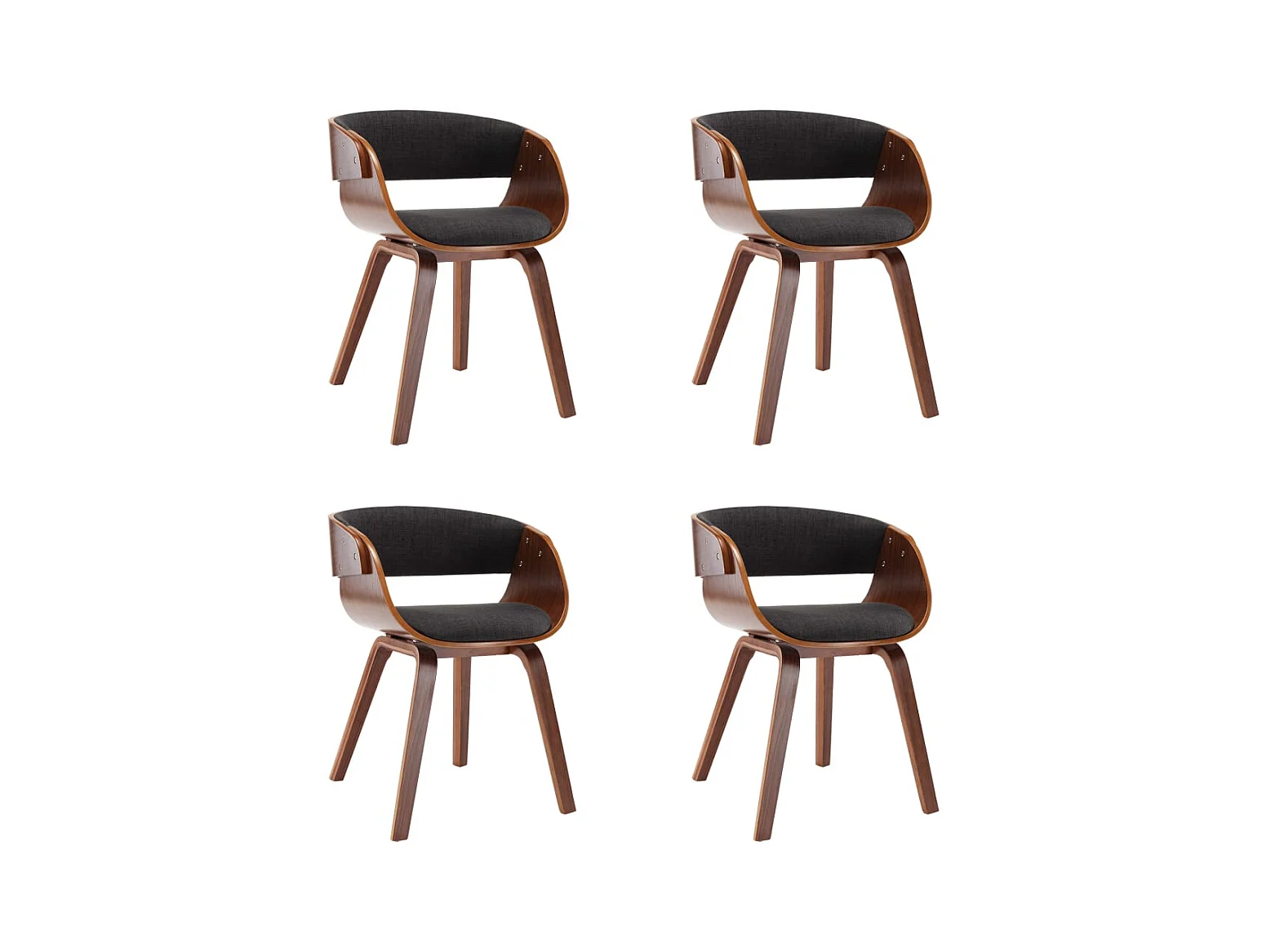 Cadeiras jantar 4 peças madeira curvada e tecido cinzento-escuro