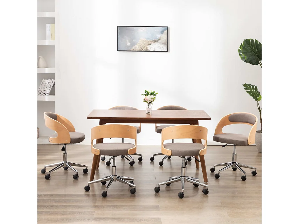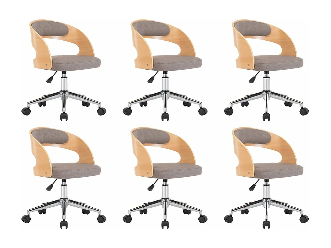 Cadeiras jantar 6 peças madeira curvada/tecido cinzento-acastanh.
