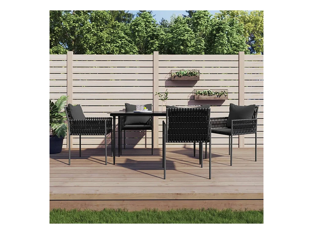 Cadeiras jardim c/ almofadões 4 pcs 56,5x57x83 cm vime PE preto PT560101