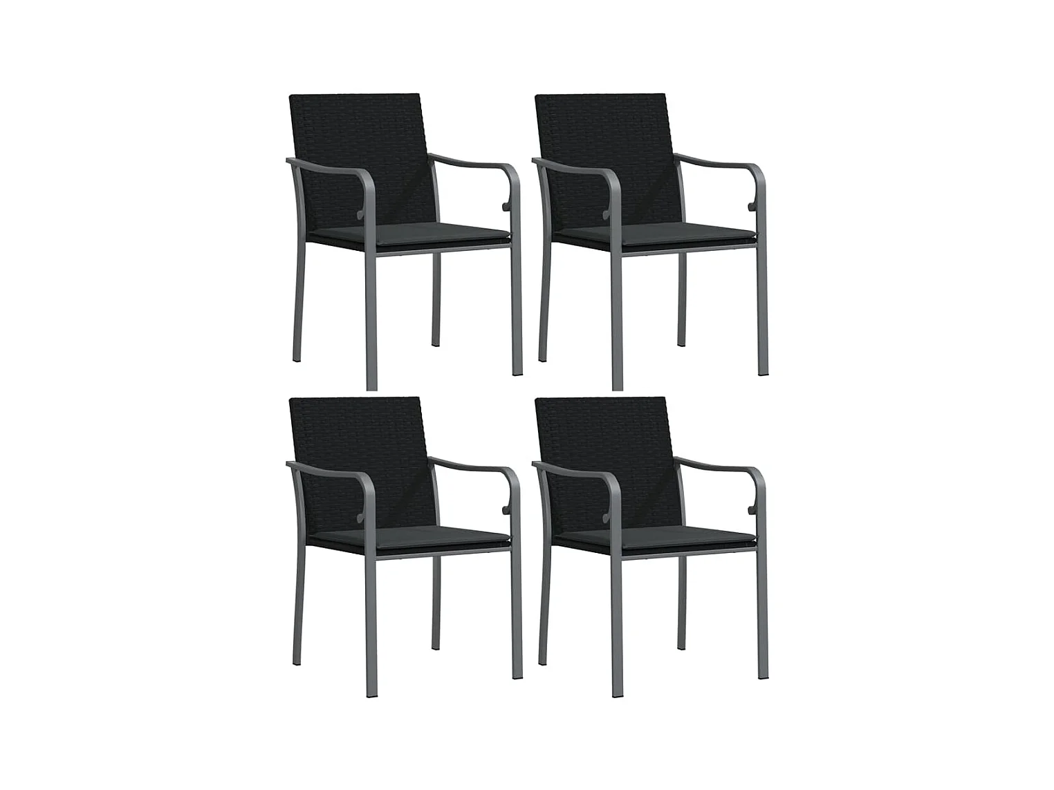 Cadeiras de jardim com almofadões 4 pcs vime PE preto PT204490