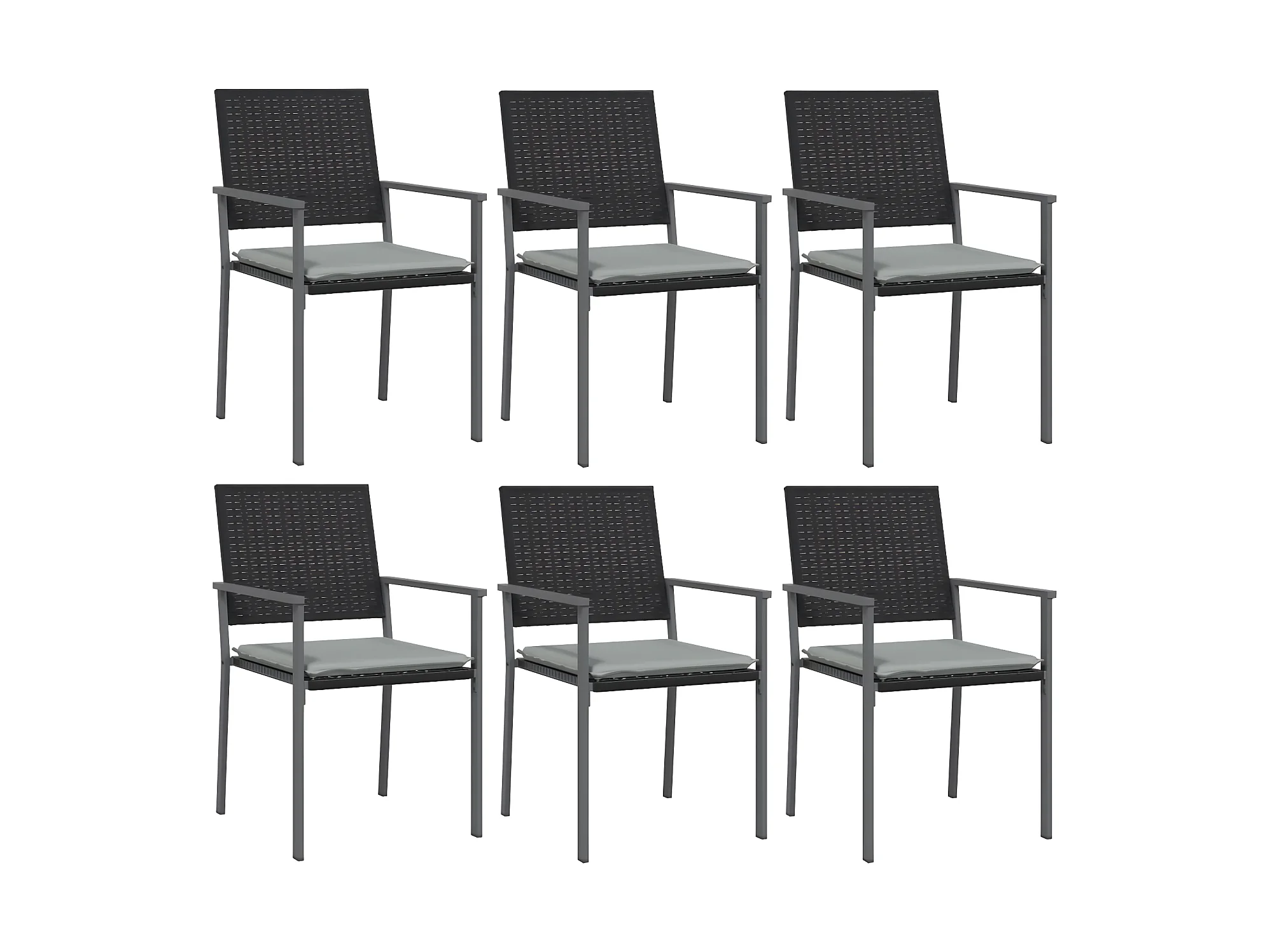 Cadeiras jardim c/ almofadões 6pcs 56x59x84 cm vime PE preto PT266663