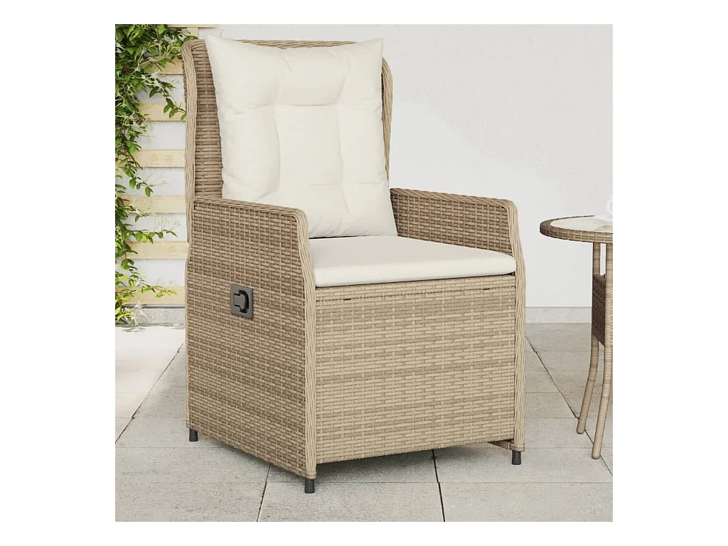 Cadeiras de jardim reclináveis 2 peças com almofadões vime PE bege
